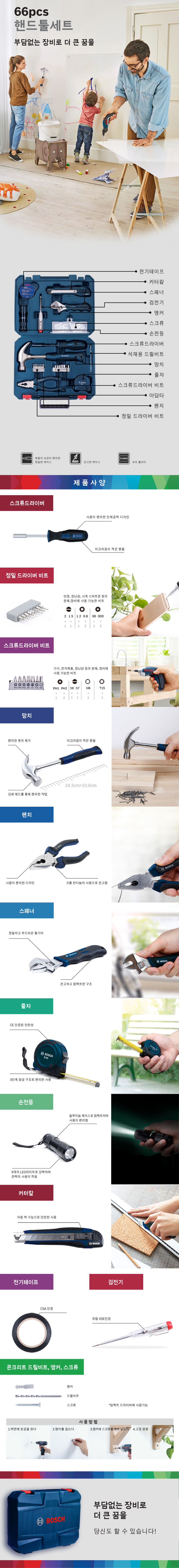 보쉬 핸드툴세트 66pcs 수공구세트 가정용 다목적 공구함세트