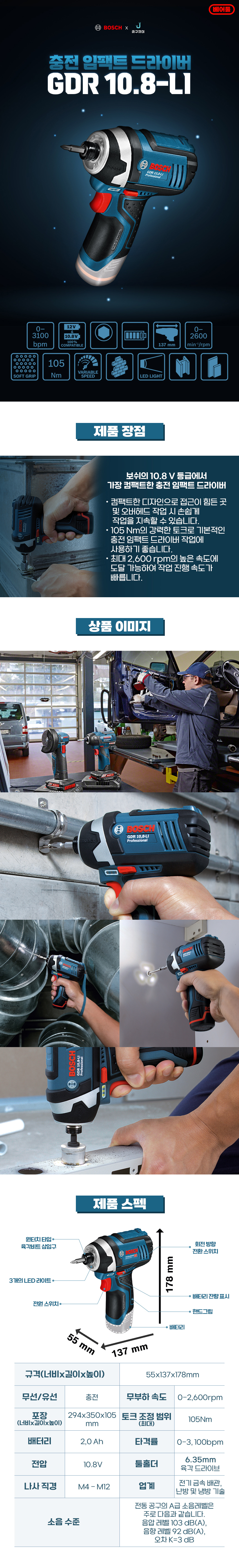 보쉬 충전 전동 무선 임팩트 드라이버 임팩 GDR 10.8-LI 본체만 베어툴