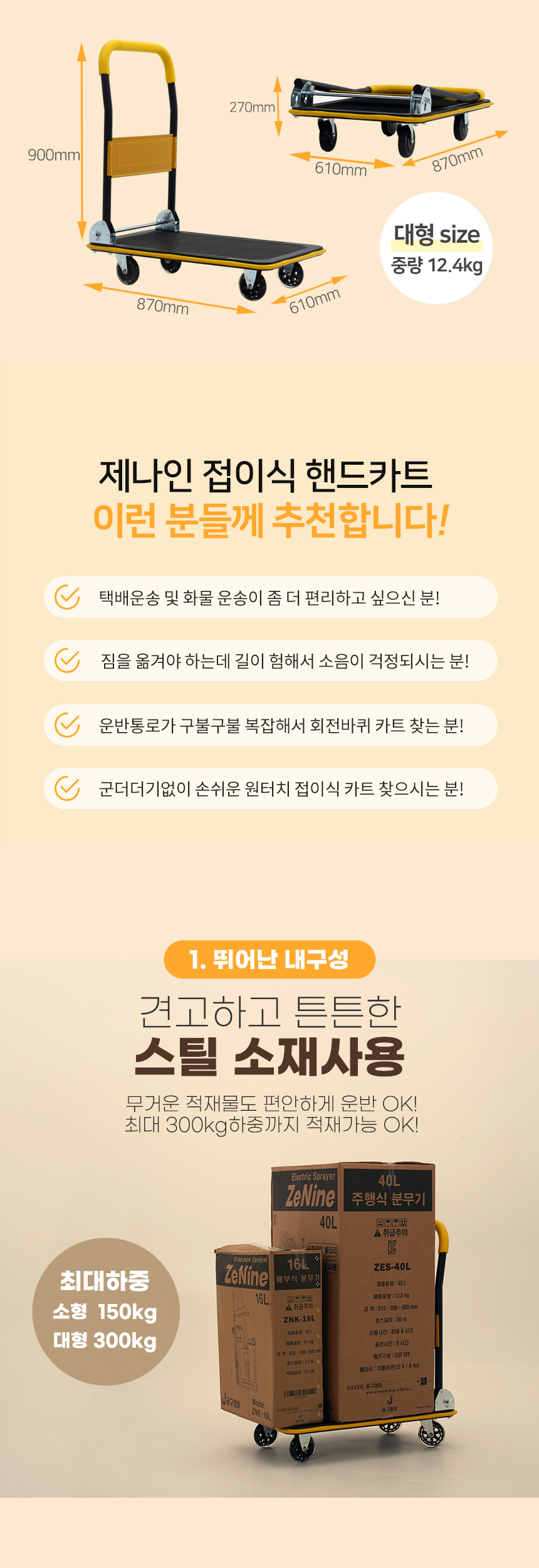 구매하기 카트선택 옵션 선택 접이식 핸드카트 이동식대차 상품선택 옵션 선택 ZN-HT01(노란색 소형) ZN-HT02(노란색 대형) ZN-HT01N(노란색 무소음 소형) ZN-HT02N(노란색 무소음 대형) MDF10(직사각형) MDF20(원형) ZN-HT01(특별할인 손잡이 리벳소리) + 추가 옵션 선택 일반형 바퀴(볼트X) 옵션 선택 4인치 소형 저소음 고정바퀴(노란카트)(+4,000) 4인치 소형 저소음 회전바퀴(노란카트)(+4,500) 5인치 대형 저소음 고정바퀴(노란카트)(+4,500) 5인치 대형 저소음 회전바퀴(노란카트)(+5,000) 무소음형 바퀴(볼트X) 옵션 선택 4인치 소형 무소음 인라인 고정바퀴(노란카트)(+6,000) 4인치 소형 무소음 인라인 회전바퀴(노란카트)(+6,500) 5인치 대형 무소음 인라인 고정바퀴(노란카트)(+7,000) 5인치 대형 무소음 인라인 회전바퀴(노란카트)(+8,000) 소켓렌치세트 옵션 선택 스마토 소켓렌치세트(1/4SQx12P)(+19,000) 카트 바퀴용 나사 옵션 선택 소형카트용(4개 1세트)(+1,000) 대형카트용(4개 1세트)(+1,500) 총 금액 0 원 장바구니 구매하기