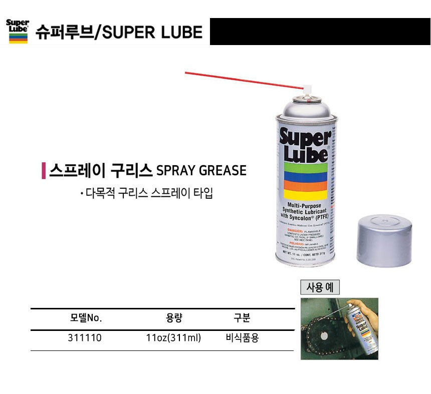 슈퍼루브 다목적 테프론 오일 스프레이 구리스 11oz(311ml)