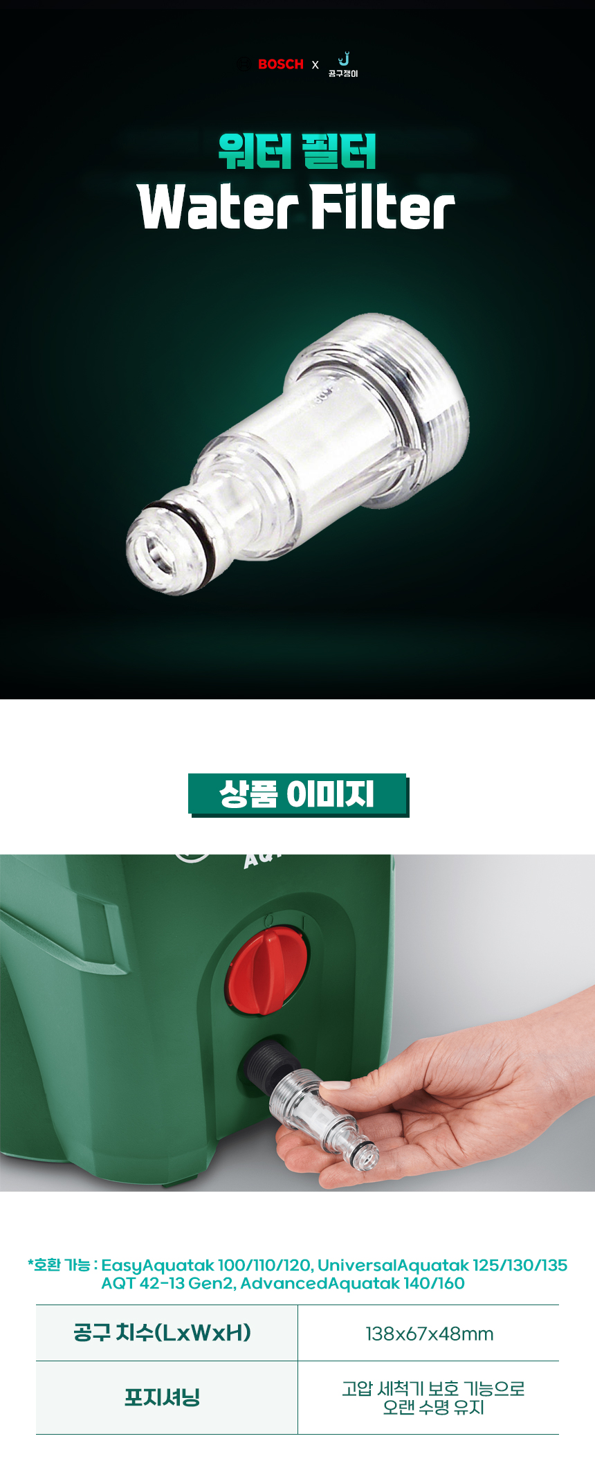 보쉬 고압세척기용 악세사리 워터필터 분사기 1EA AQUATAK F016800577