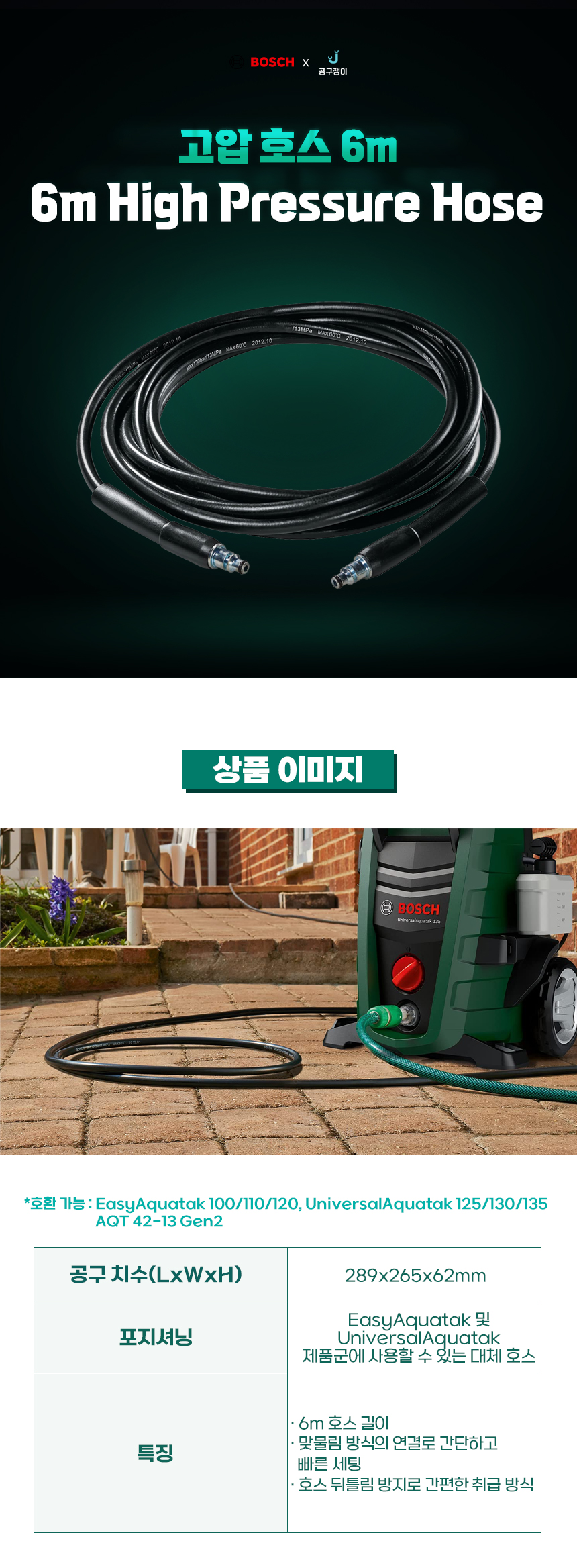 보쉬 고압세척기용 악세사리 고압호스 6m 130bar 분사기 1EA AQUATAK F016800361