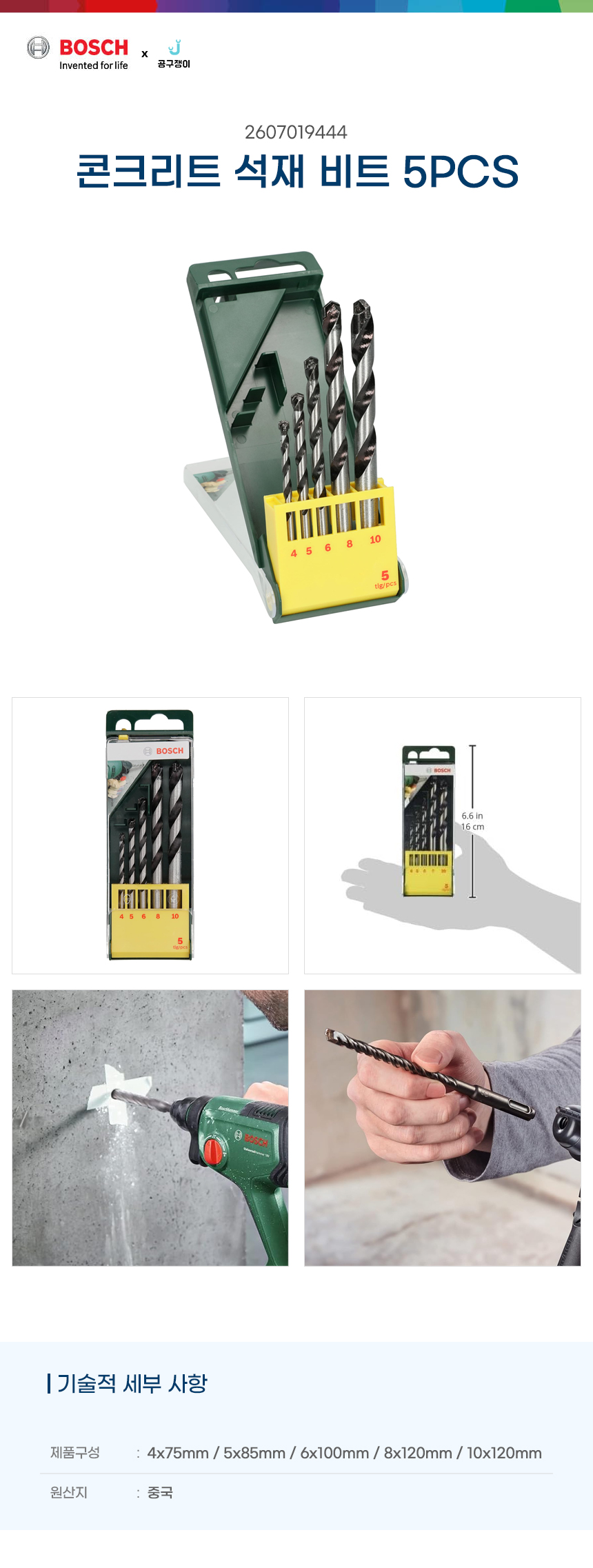 보쉬 콘크리트 석재용 드릴비트 세트 5PCS 기리세트 4,5,6,8,10mm 2607019444