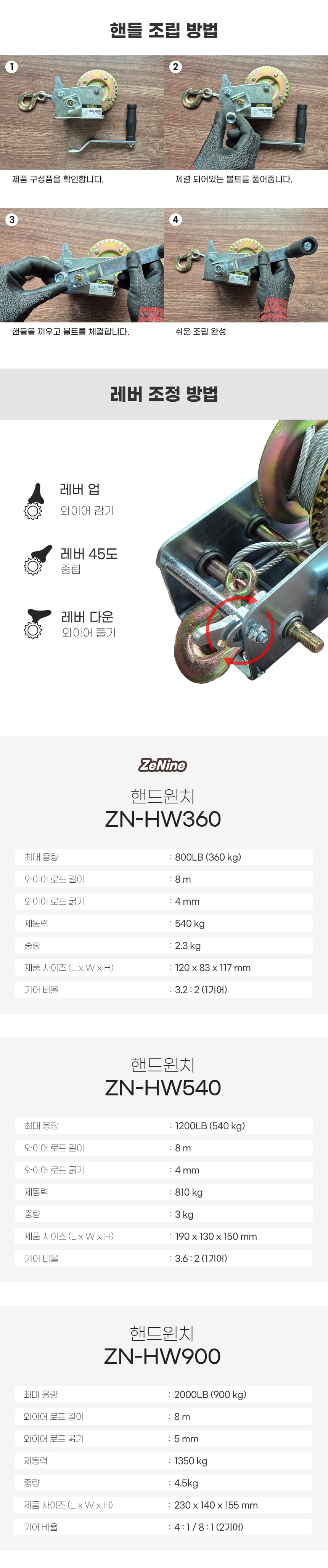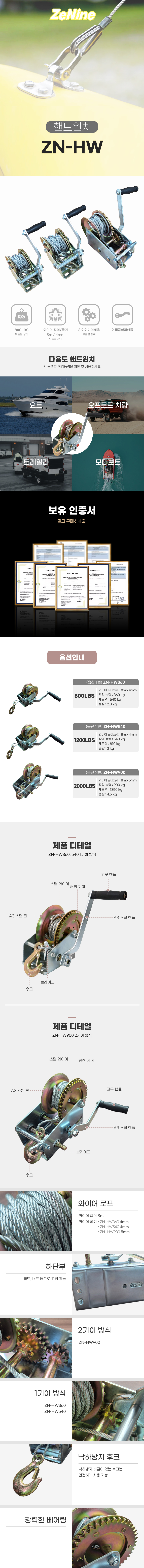 제나인 수동 윈치 와이어 핸드 윈치 미니 리프트 도르레 체인블럭 호이스트 ZN-HW360