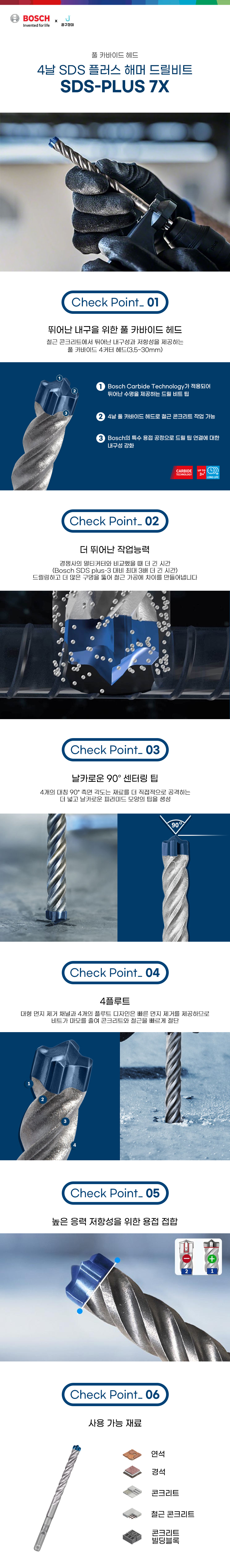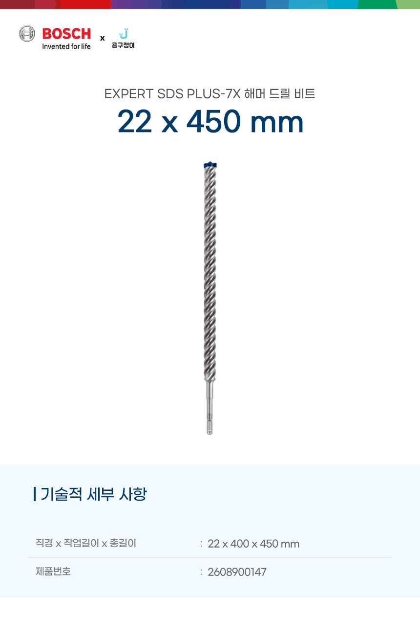 보쉬 해머드릴비트 SDS PLUS 7X 콘크리트 콘기리 22x400x450mm 4날 2608900147