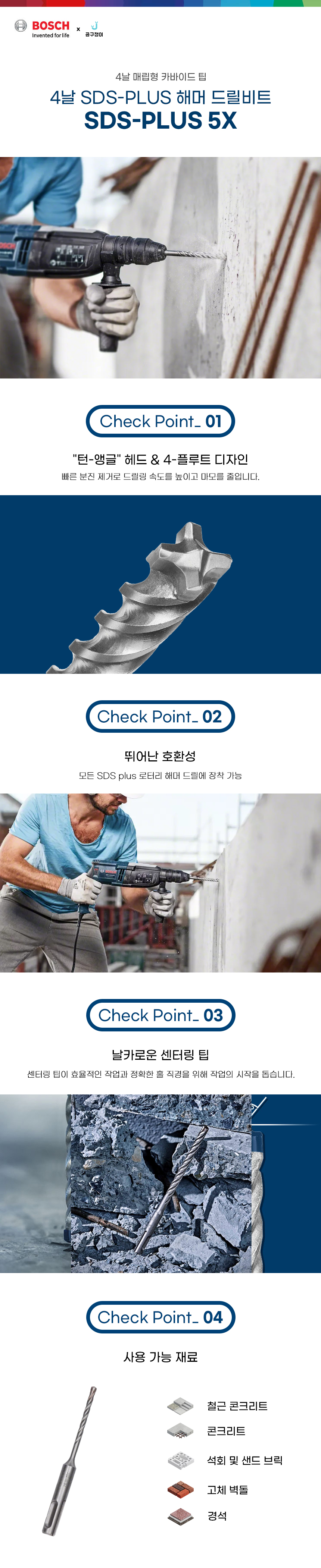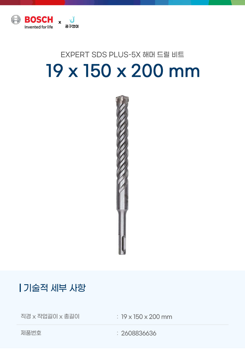 보쉬 해머드릴비트 SDS PLUS 5X 콘크리트 콘기리 19x150x200mm 4날 2608836636