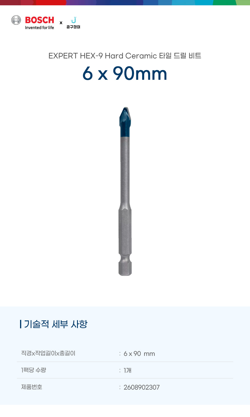 보쉬 육각 타일드릴비트 타일기리 세라믹 하드타입 EXPERT 6x90mm 2608902307