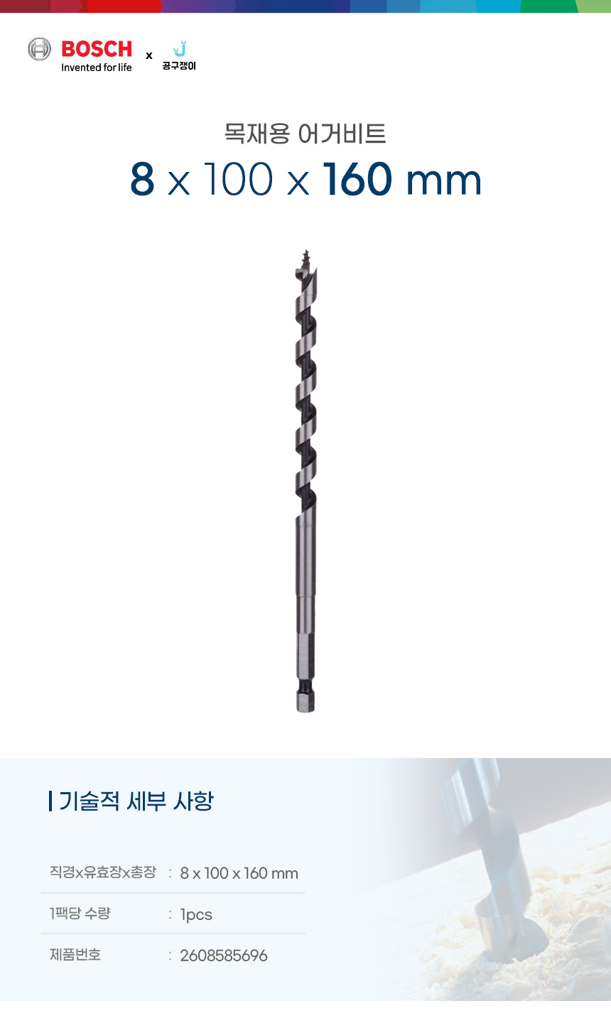 보쉬 목재용 어거비트 드릴링 목공 천공 육각타입 8x100x160mm 2608585696
