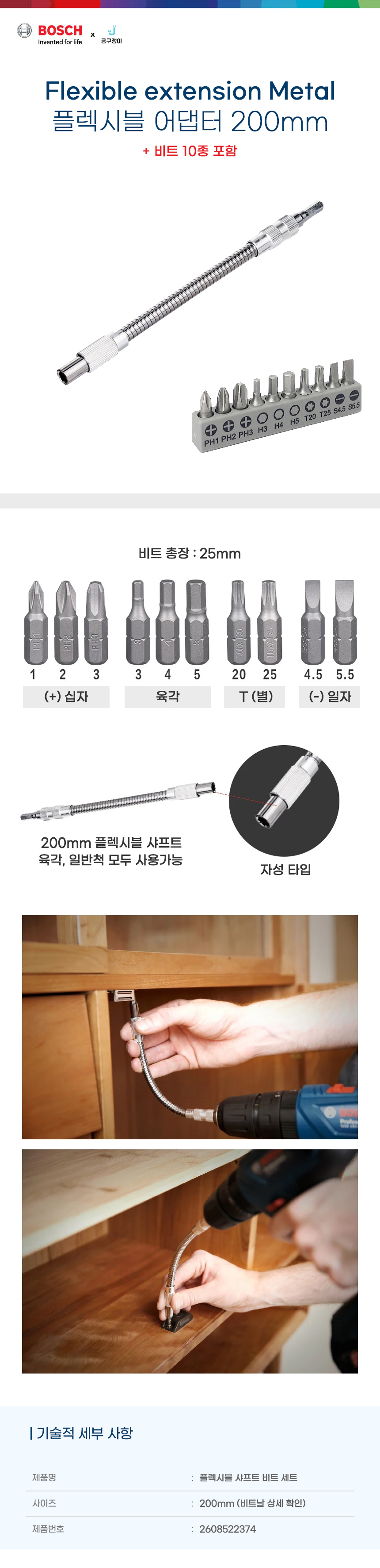 보쉬 플렉시블 샤프트 아답타 비트세트 아댑터 코너 드릴 코브라 2608522374