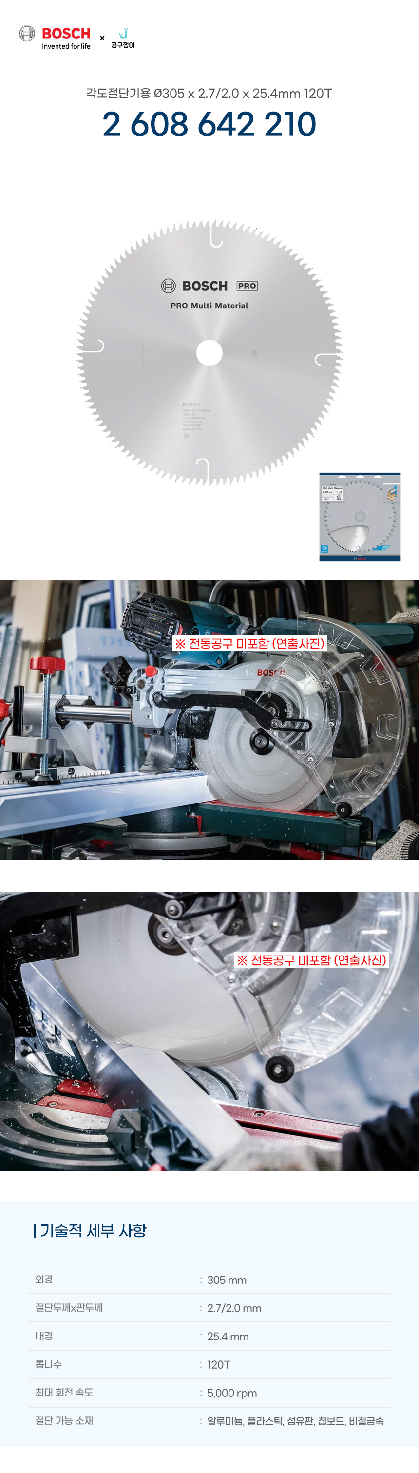 보쉬 알루미늄 원형톱날 305mm 120T 멀티 다용도절단 하이섀시절단 2608642210