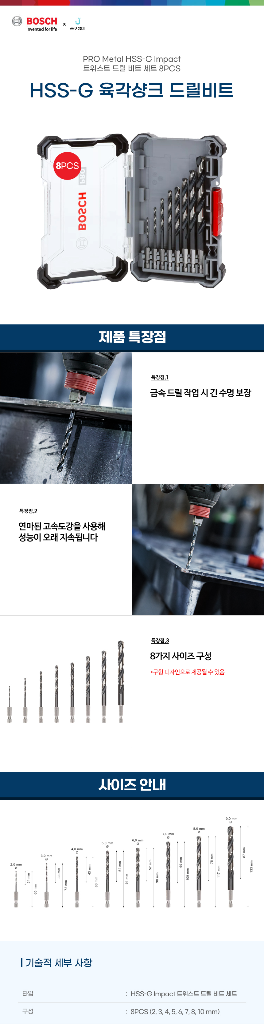 보쉬 육각샹크 메탈 드릴비트세트 8PCS 임팩트 HSS-G 금속용 2608577146