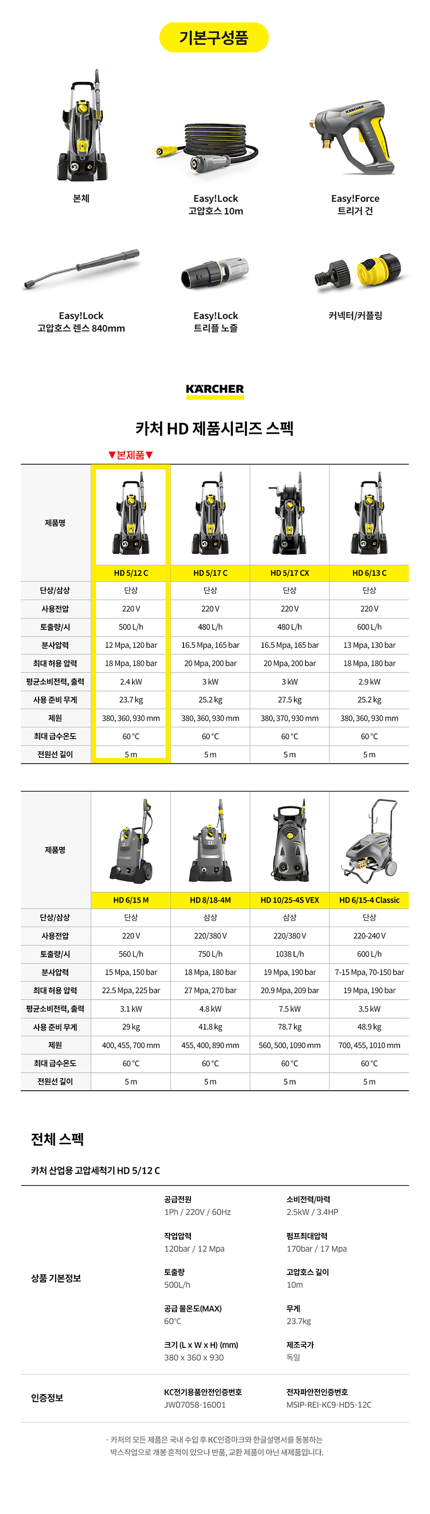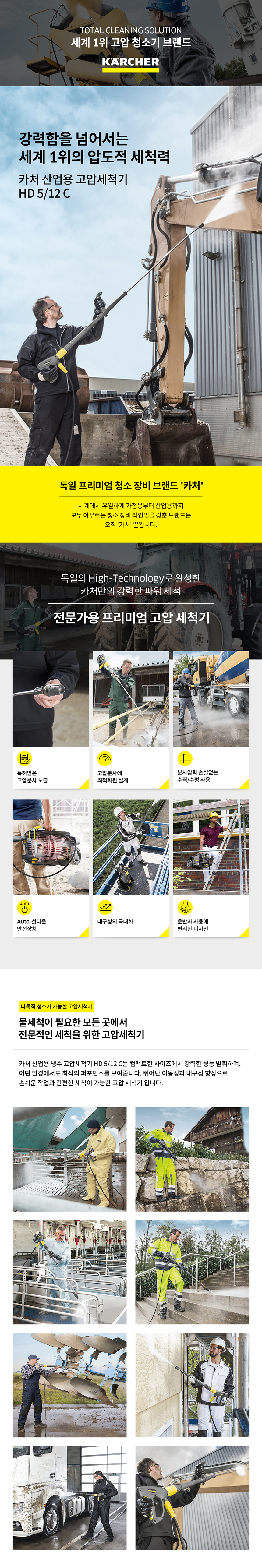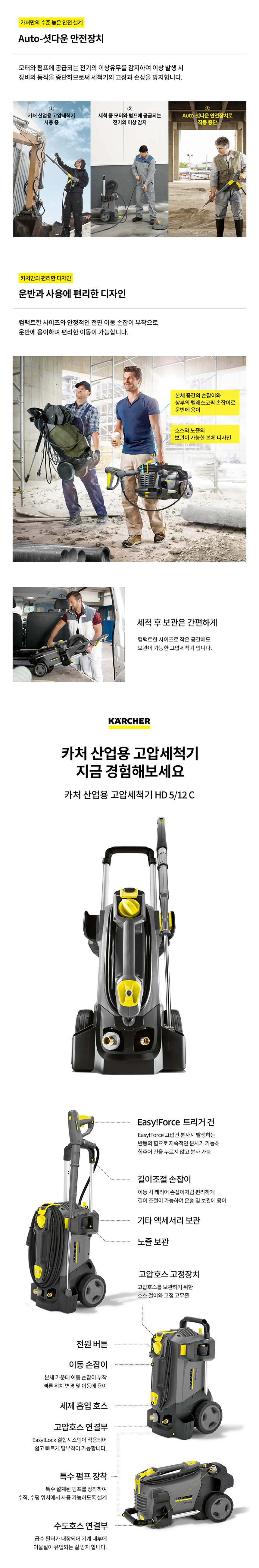 카처 고압세척기 HD 5/12C 고압세차기 고압분사기 산업용 초고압 중장비세차 공장청소